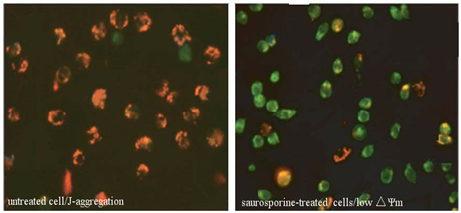 JC-1 是一種廣泛用于檢測線粒體膜電位△Ψm 的理想熒光探針。可以檢測細(xì)胞、組織或純化的線粒體膜電位